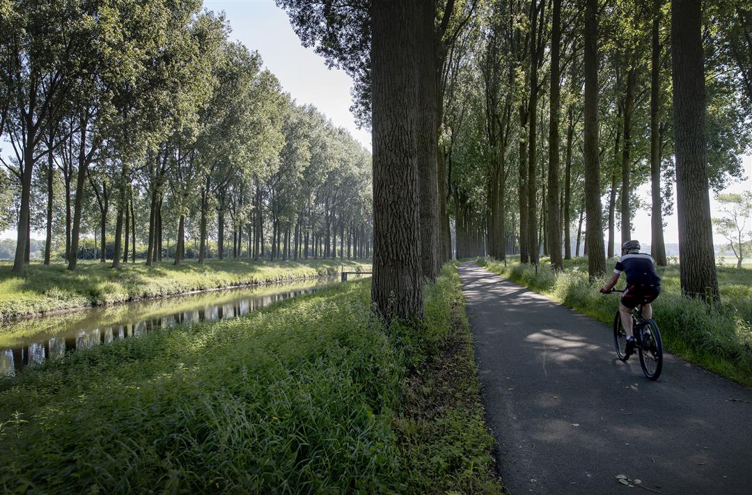 Ontdek de ‘Stinker’ en de ‘Blinker’, het Schipdonkkanaal met Leiewater en het Leopoldskanaal die zorgt voor afwatering uit de polders van het Meetjesland. Je stoot op ‘De Siphon’ in Damme, het bekende restaurant waar de Brugse Vaart, het Schipdonkkanaal én het Leopoldskanaal elkaar kruisen. Rij langs twee parallelle kanalen op de ‘fietssnelweg’ tussen Gent en Heist. Je ontdekt hartje Damme én Maldegem. Je komt een kerfplekje voor verliefden tegen aan het ‘eiland’ Strobrugge in Maldegem waarop nog een stukje authentieke Lieve ligt. Fiets door het grensdorp Middelburg maar ook door Donk en Moerkerke.